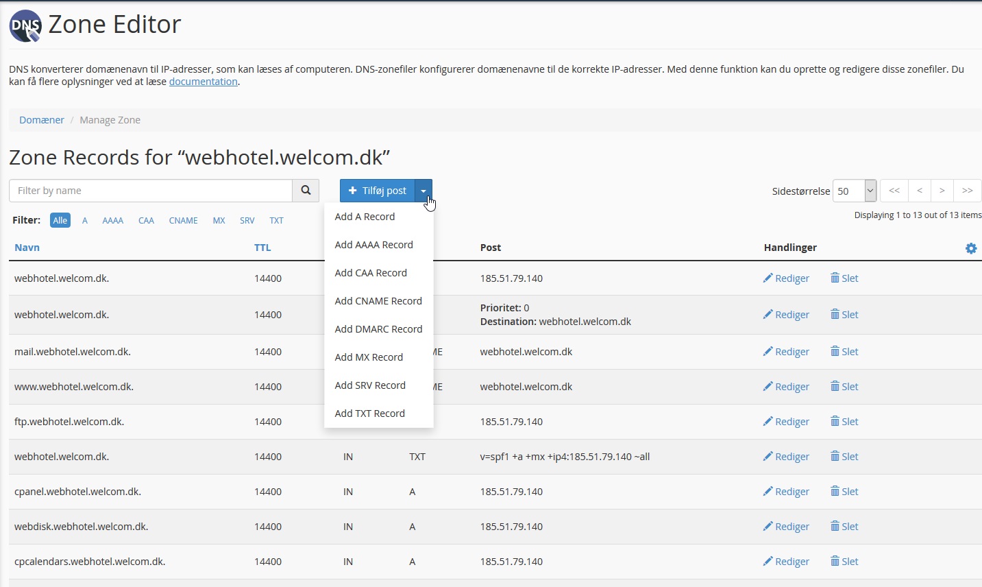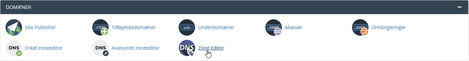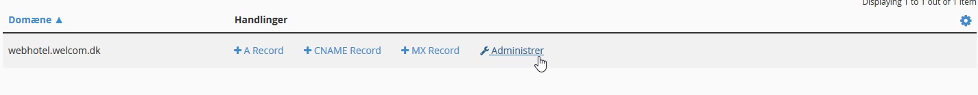 Herfra kan du hurtigt og nemt oprette A / CNAME og MX records.